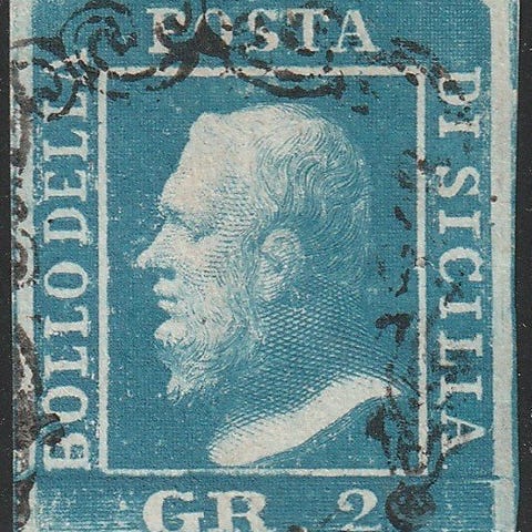 Italian antiikkivaltiot - Sisilia 1859 - 2 g. I^ Tav. azzurro PA pos.80 Sass 6