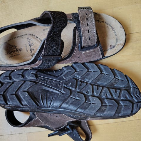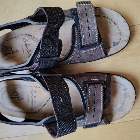 Hyvät,nahkaiset,mustat sandaalit.