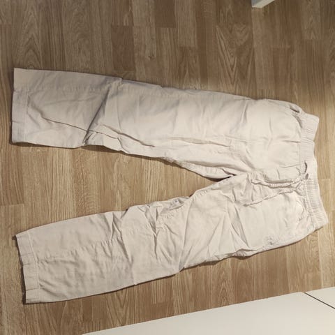 Miesten housut koko S, (46) puuvillaa 98% ja elastaania 2%. Takataskut on