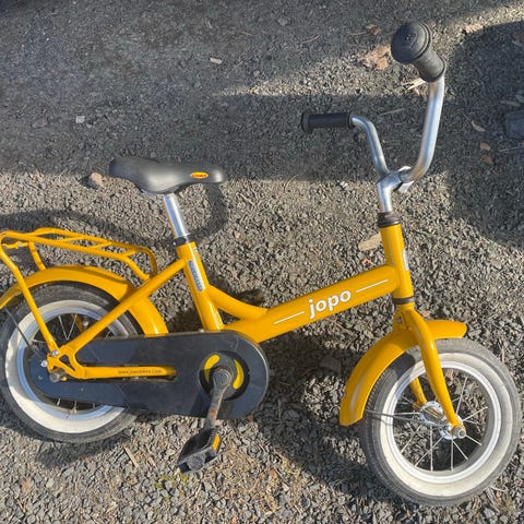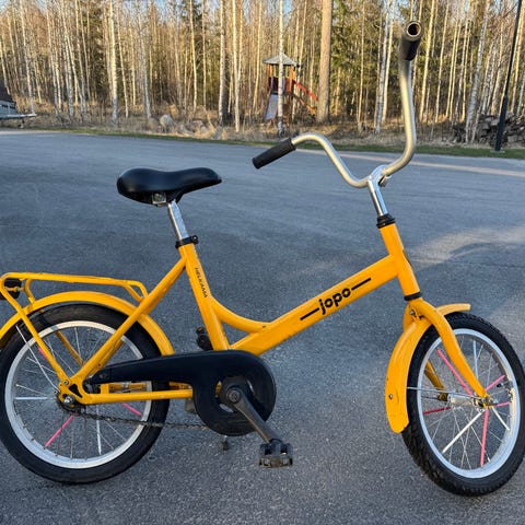 Helkama Jopo lastenpyörä, jossa 12" renkaat. Runkoväri pinkki ja valkoiset renkaat. Pyörässä jalkajarru ja takatavarateline. Soveltuu pienille lapsille, joille 12" koko on sopiva ensimmäisiin ajokokemuksiin.