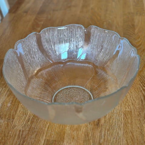 Lasinen boolimalja, mukit ja kauha sekö koukut millä lasit saa roikkumaan maljak reunoille. Ehjä. Nouto tai postitus.