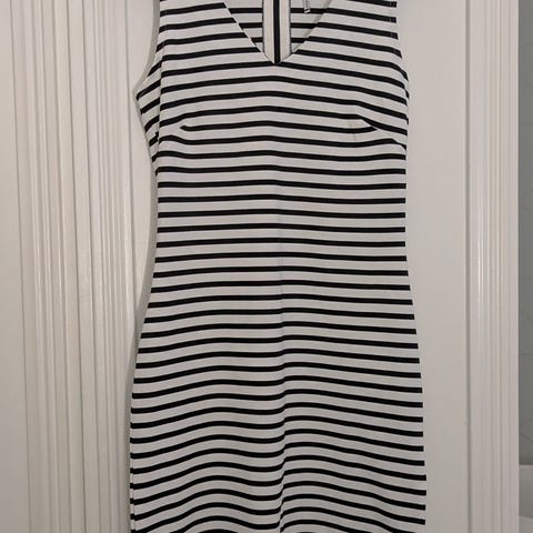 Kevyt ja näyttävä mustavalkoinen cocktailmekko, ostettu Thaimaasta design-liikkeestä. Kauniisti laskeutuva kangas ja naisellinen leikkaus, jossa korostuvat vyötärö ja pehmeä siluetti. Yläosassa kauniit yksityiskohdat ja hieman koristeellisuutta, joka tuo juhlavuutta.