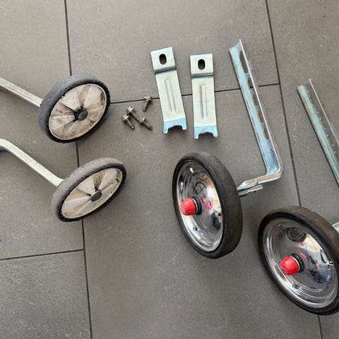 Uusi apupyörät, jossa hyvä pitkä kiinnitysvarsi, sopii erikokoisiin polkupyöriin. 12"-20".