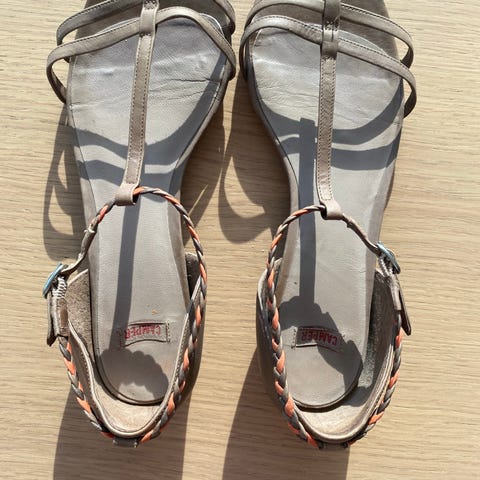 Italiasta ostetut valkoiset nahkasandaalit. Koko 39. Kenkiä on käytetty, jolloin pohjat ovat kuluneet, mutta yleisilmeeltään (ja kun kenkä jalassa) siistit.