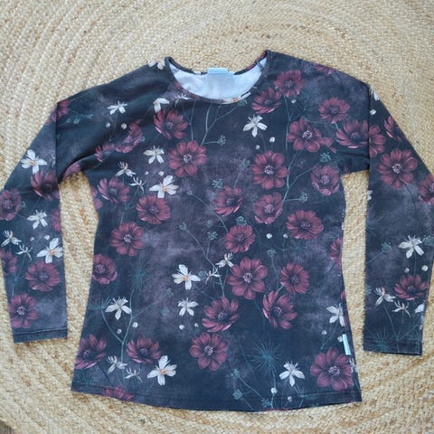 Ihana Versonpuodin takki joustocollegea. Kaunis pastellisävyinen kuosi harmaalla pohjalla. Versonpuodin laatua!
