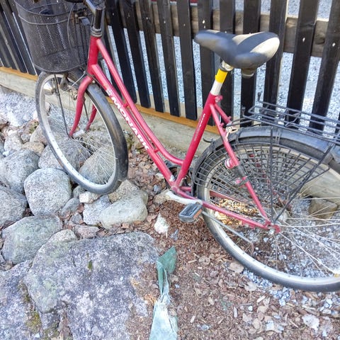 Rossano naisten pyörä, vuosimallia 2000-luvun alkupuolelta! Runkokoosta en tiedä, arvelin M, sopinee 160-170cm pituiselle. Tuumakoko 28.