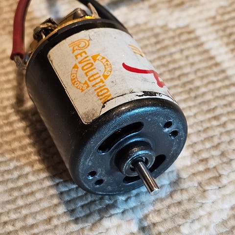 Ns. Vakiomoottori 90-luvulta. Näillä ajettiin siis kilpaa. Lähes käyttämätön ja testattu toimivaksi, mutta en löytänyt omista kätköistäni antaa mukaan enää kuin yhden jousen hiiliä varten ja niitä tietenkin tarvitaan kaksi.