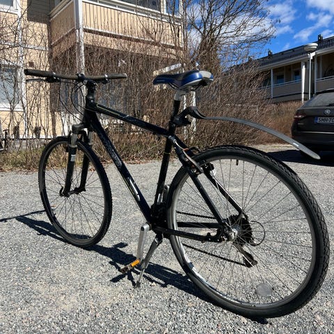 Vuodelta 2010, joten ei näytä uudelta mutta toimii. Huollettu viimeksi keväällä 2025. Rullajarrut saattavat vaatia rasvausta.