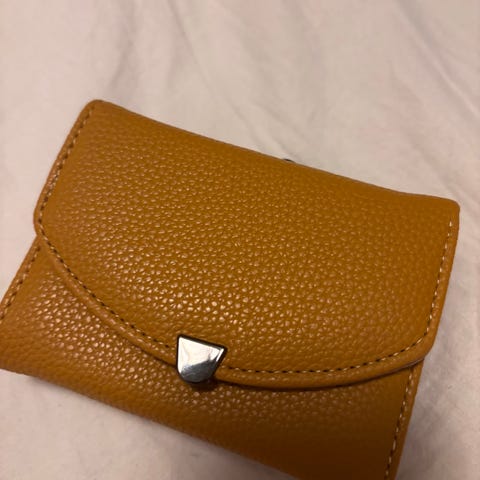 Myytävänä pienikokoinen 11,5x9 cm lompakko, jossa kuvanmukaiset osiot, väri tummanvihreä.