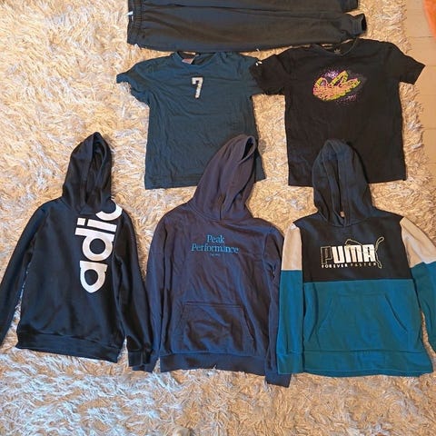 Kaksi Peak Performance hupparia (koko 150) ja gollegehousut (koko 152) 3 kpl, yhdet Billebeino ja kahdet Puma. Ehjässä ja siistissä kunnossa. Yhteishinta.
