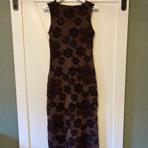 Day Birger et Mikkelsen juhla- tai cocktailmekko naisille koossa M. Mekko on ruskeasävyinen ja siinä on pitsimäinen, kuvioitu pinta. Vuorillinen rakenne lisää käyttömukavuutta. Sopii juhla- ja cocktailtilaisuuksiin tai muihin siistimpiin menoihin.