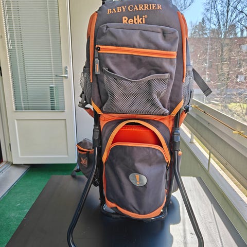 Jämäkkä ja laadukas lasten kantorinkka. Rinkassa on mukasti taskuja. Rinkkaa on säilytetty sisätiloissa. Ollut meidän ja minun kaverin perheen käytössä. Kaverin oli ostanut tämän rinkan uusiseelantilaisen kantorinkan Uudessa Seelannissa reissatessaan. Me ollaan käytetty tätä metsäretkillä, ulkomailla ja esim. asuntomessuilla, joihin kärryä ei ole voinut ottaa. Nyt lapset eivät enää tarvitse. Kunto on edelleen hyvä pl. sadesuojan yksi osa (vika näkyy kuvassa), jota ei meidän perheessä oltu lainkaan käytetty.