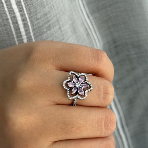 Pandora sormus naisille. Materiaalina hopea ja koristeena kristalli. Sormus on pandoran disney sarjaa, kristallia pitelee stich hahmo.