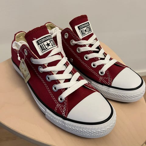 Valkoiset matalavartiset Conversen tennarit. Pari kertaa olleet jalassa, mutta ovat uuden veroiset.