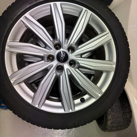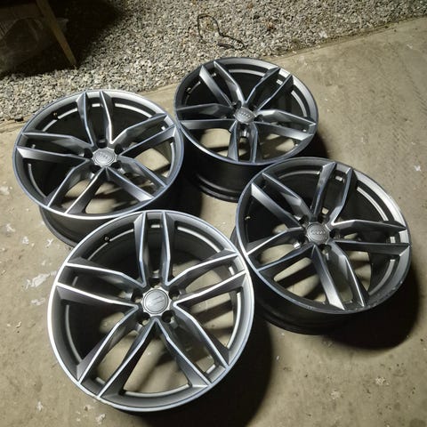 Elikkäs Speedlinen tekemät Audin Oem vannesetti joutilaana koossa 8.5x20 et45. Keskireikä tais olla 66.6. Päällä hyväkuntoiset Toyo Snowproxin 255/35-20 kitkat paitsi yhden kummin reunassa hituse enemmä kulumaa. Setti ok kuntoinen mitä nyt jotain pieniä jälkiä vanteissa varmasti kun käytetyt mut yleisilmeeltään siistit.