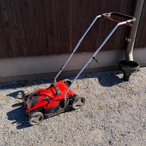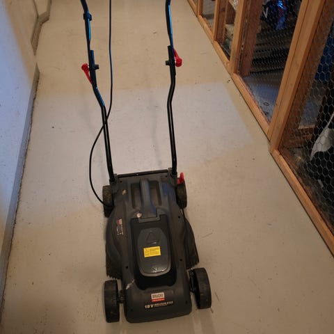 Ostettu 2024 vanhalta pariskunnalta käytettynä, joiden mukaan konetta käytetty 4 kertaa mökillä, kunnes mökistä luovuttu heikon terveyden takia. Meillä kokeiltu leikata nurmikko kertaalleen 2024 kesällä ja kone toimi hyvin, kunnes se yhtäkkiä hiljeni, eikä koneeseen tullut mitään eloa uusista akuista huolimatta. Sen jälkeen maannut 2 vuotta sisällä lämpimässä ja akkuja on latailtu pari kertaa vuodessa säilyvyyden parantamiseksi. Leikkurin konepellin alle on kurkattu korjaamisen toivossa, mutta silmällä katsottuna kaikki näyttää ehjältä (kuva). "Konepellin" ruuvit ovat säilytyksen aikana kadonneet johonkin.