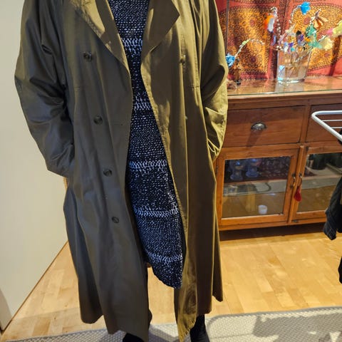 Mitat näkyy kuvissa. Kunto on hyvä, takkia on käytetty vain vähän. Ei mitään vikoja tms. Takin originaali tyyli on että kangas on hieman käytetty armeijatyylin mukaan. Takkikangas on vähän paksumpaa puuvillaa kuin ohuet trenssit.