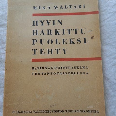 Ensipainos kansipaperilla. Kansipaperin kunto kohtalainen, kirjan kunto hyvä.