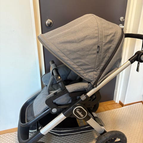 Emma lastenrattaat, joissa vaaleanpunainen kuomu ja istuinosa sekä musta runko ja alaosa. Rattaissa on säädettävä selkänoja, viisipistevaljaat ja turvakaari. Edessä on kääntyvät pienemmät pyörät ja takana suuremmat pyörät. Työntöaisa on yhtenäinen, ja alla on tavarakori. Sopii yhden lapsen kuljettamiseen arjen liikkumiseen ja asiointiin.