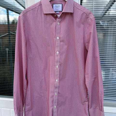 Istuvuus Tyrwhitin 'Extra slim fit, eli muihin valmistajiin verrattuna pikemminkin tyypillinen slim fit-istuvuus (Tyrwhitin leikkauksissa regular=teltta, slim fit ="tavallinen leikkaus" ja extra slim fit = kapeampi istuvuus) ompelija avannut selkäpuolen muotolaskokset, joten istuvuus todellakin vastaa tyypillistä slim fittiä. Helppohoitoinen non-iron. Paidat ovat käytettyjä, mutta yleisilme on siisti.
