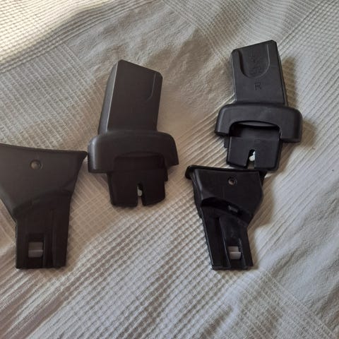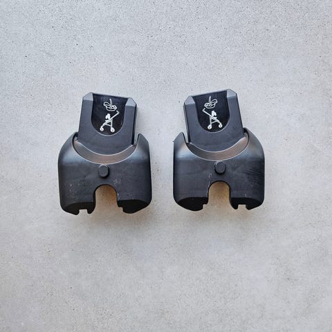 Adapterit myös mukana joilla saa Maxi-Cosin turvakaukalon kiinnitettyä Emmaljungan ratasosaan suoraan.