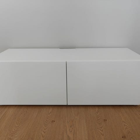 Hyväkuntoinen tv taso uuden tieltä pois. Voi myös ottaa jalat pois ja kiinnittää seinään.