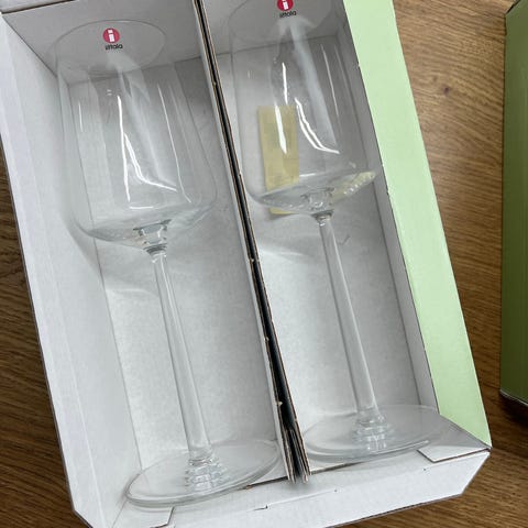 Iittala Essence viinilasit on suunnitellut Alfredo Häberli. Pakkauksessa on neljä uutta käyttämätöntä viinilasia.