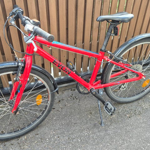 Nakamura Bello lastenpyörä, 24-tuuman renkaat ja kolme vaihdetta. Jalkajarru ja käsijarru. Kaikki toimii hyvin, pientä käytön jälkeä on.