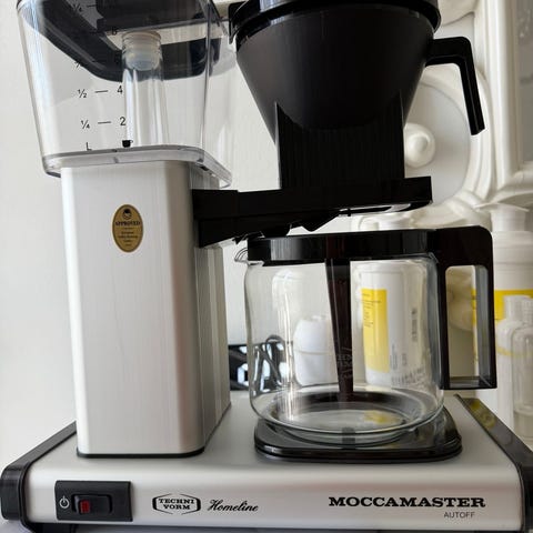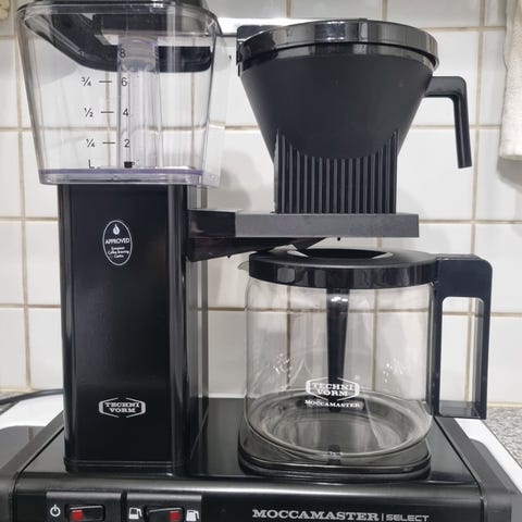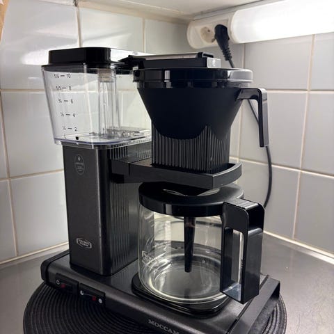 Siisti ja puhdistettu moccamaster kahvinkeitin automatinen sammutus, tippalukko, ehjä, toimii hyvin.