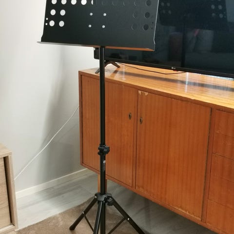 Vähäisessä kotikäytössä ollut jämäkkä ja oikein hyväkuntoinen nuottiteline on vailla uutta kotia. Nouto tai toimitus onnistuu keskustaan ja lähialueille.