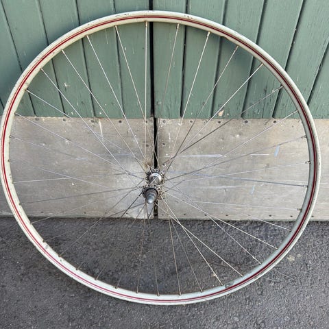 Polkupyörän etu- ja takakiekot. Kuvissa näkyy yksi musta kiekko ja kaksi hopeanväristä kiekkoa, joissa on pinnoitetut vanteet ja navat valmiina. Kiekot sopivat yleiskäyttöön kaupunki- tai peruspyörään. Tarkemmat tiedot, kuten koko, kiinnitystapa ja jarrutyyppi, kannattaa varmistaa myyjältä ennen ostoa.