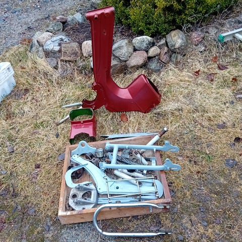 Pappa Tunturin osia.Uudet ketjun suoja, uudet moottorin suojamuovit, uusi etulokasuoja, käytetty takalokari,vakaisimen ehjä lasi ja moottorin sivuposki.Hinta koko satsille 150.