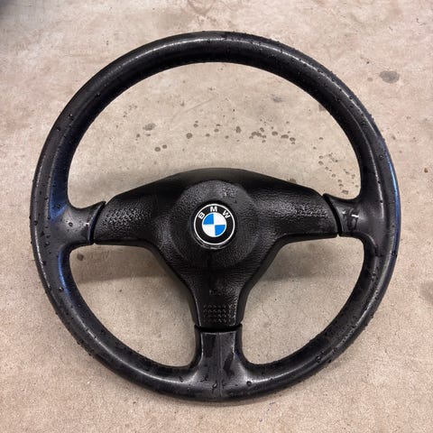 Käytetty alkuperäinen sporttiratti kasaribemariin linja-autoliiton suositteleman suuren ohut- ja muovikehäisen ratin tilalle. Kehän halkaisija 385 mm. Nahkaosa ompeleineen ehjä, kiillottunut, en ole putsannut tai käsitellyt millään. Varaosanumero 32331160675.