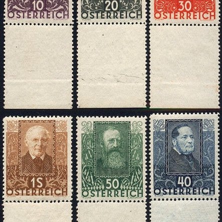 Itävalta, 1935/37, erä täydellisiä sarjoja ensimmäisestä tasavallasta, Winterhilfe II, Heerführer, FIS II, Erfinder & Ärzte, postimerkeillä leimattuja ja kirjeen palasella, moitteettomassa kunnossa