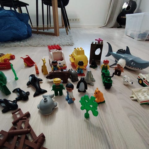 Lego Duplo talo ja eläintarha/ Fun Zoo. Lisäksi Pipsa Possu -perhe, joka on mahdollisesti Bloxx-sarjaa, mutta sopii yhteen Duplojen kanssa.