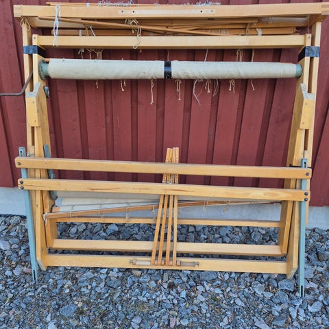 Puinen kangaspuu kudontaan. Sopii esimerkiksi mattojen, liinojen tai muiden tekstiilien kutomiseen. Rakenteessa näkyy puinen runko, loimilankojen telat sekä polkuset ja muut kudontaan tarvittavat osat. Soveltuu käsityöharrastukseen tai perinteisen kudonnan harjoittamiseen tilassa, johon mahtuu isokokoinen kangaspuu. Tavara eurassa