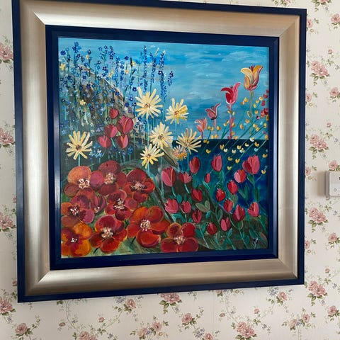 Kehystetty akvarellimaalaus, jossa on syksyinen marja- ja lehtiaihe. Teoksessa on lämpimiä punaisen, oranssin ja vihreän sävyjä vaalealla taustalla. Maalaus on paspiksella varustettu ja sijoitettu monisävyiseen, suorakaiteen muotoiseen kehykseen. Sopii sisustuselementiksi esimerkiksi olohuoneeseen tai makuuhuoneeseen. Marjatta Vierikon maalaama.. Mitat korkeus 44cm, leveys 52cm.