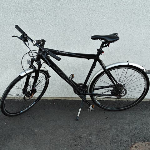 Trek hybridipyörä unisex-käyttöön. Rungon koko M ja 27.5" kiekot. Pyörässä on etujousitus, levyjarrut ja monivaihteinen vaihteisto takana. Väriltään pyörä on sininen, ja siinä on lokasuojat eteen ja taakse. Soveltuu arkiajoon ja kevyille maasto- ja sorateille sekä sekä naisille että miehille. Vaati kunnostusta en ole laitanut ilma renkaille on ollu pari vuotta varastossa .