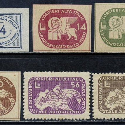 Italia 1945 - CORALIT, pyöräilijä, täydellinen viiden arvon sarja - Sassone