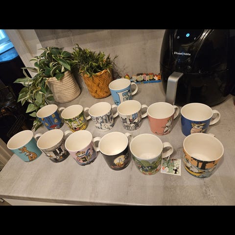 Arabia Muumimukeja 4 kappaletta. Hyväkuntoiset, ei halkeamia. Kaikki 4kpl yhteishintaan 45€ tai vastaisesti mahdollista ostaa yksittäin 15€/kpl.