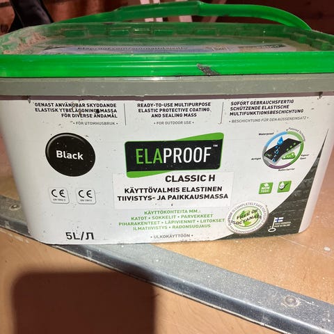 ElaProof Indoor H - isosyanaattivapaa käsityökaluilla levitettävä elastinen pinnoite- ja tiivistemassa sisäkäyttöön. Estää radon kaasun vuodon yli 98 prosenttisesti.