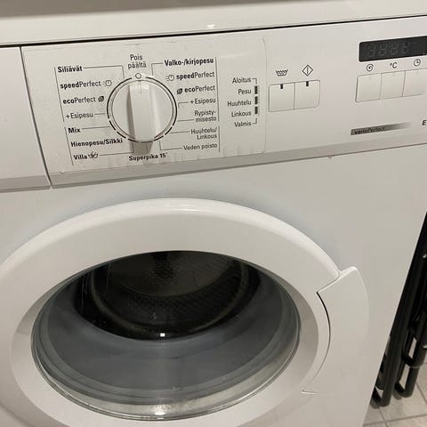 Siemens edestä täytettävä pesukone. Valkoinen vapaasti sijoitettava malli, jossa etuluukku ja ohjelmavalitsin sekä näyttöpaneeli yläosassa. Energiamerkintä ja perustoiminnot näkyvissä etupaneelissa. Soveltuu kodin pyykinpesuun erilaisilla pesuohjelmilla ja säädöillä. Tarkemmat tiedot, kuten kapasiteetti, linkousnopeus ja mitat, kannattaa varmistaa laitteen tyyppikilvestä tai käyttöohjeesta.