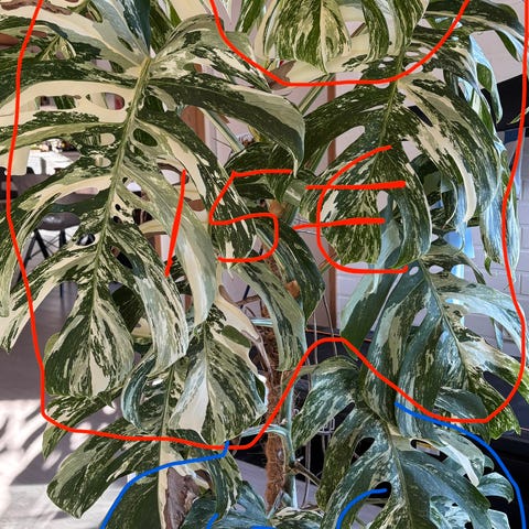 Värivirheellinen peikonlehti juurtunut latvapistokas, emokasvi tekee hyvin vaaleita lehtiä, talvella variegaatio hieman taantunut, mutta kesällä enemmän valkoista lehdissä.
