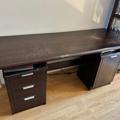 Pöytä on siisti ja yleiskunnoltaan hyvä. Sopii hyvin työpöydäksi, opiskeluun tai säilytystasoksi.