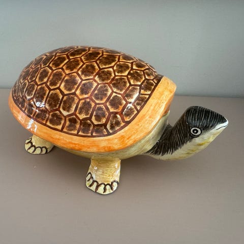 Keramiikkarasia kannella ja koirafiguuri