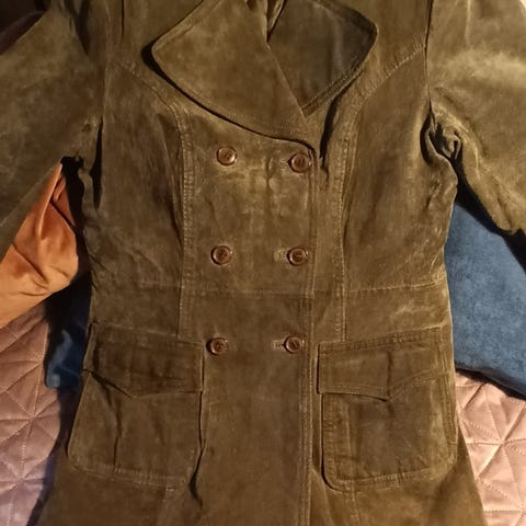 L kokoinen naisten mokkanahkainen takki karvareunuksella. Hyväkuntoinen.