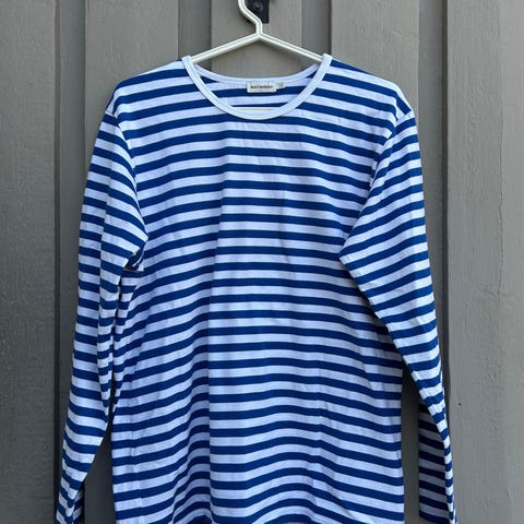 Marimekko merkkinen vaaleansininen/valkoinen pitkähihainen paita.