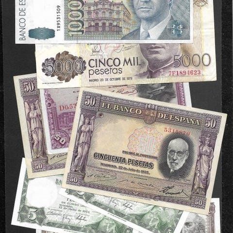 Espanja, 4 seteliä1x25 pesetas 1936 Gijon1x50 pesetas 19281x50 pesetas 19351x100 pesetas 1936 Gijon1x5000 pesetas 1979Katso kuvat.Rekisteröity lähetys seurantanumerolla.