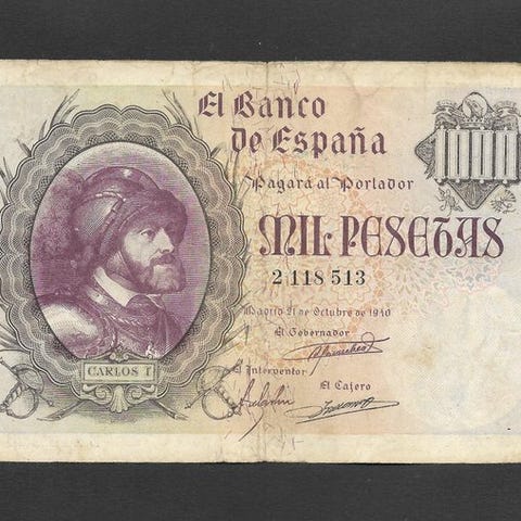 Espanja - Lajitelma 2 seteliä1x1 peseta (1945) ilman sarjaa1x25 pesetas (1954) ilman sarjaa, alhaisen sarjanumeronKatso kuvat.Rekisteröity lähetys seurantalumerolla.