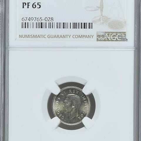 SUDÁFRICA. Pretoria. 3 Pence. 1947. Jorge VI (1936-1952)- Arvo: 3 penniä.- Valtaannousu: Yrjö VI (1936-1952).- Vuosi: 1947.- Tekstit: Etu: GEORGIVS VI REX IMPERATOR, Yrjö VI:n kuninkaan muotokuva vasemmalle. Taka: SOUTH AFRICA · SUID-AFRIKA · 1947 · 3D, protea-kukka jota kiertävät tyylitellyt säteet.- Arviointi: PF65 (NGC).3 penniä – Sudáfrikan proof-kolikko, jolla Yrjö VI:n vasemmalle päin oleva muotokuva, realistisen tyylin ja huolellisesti toteutettu, erinomainen määritelmä hiuksissa ja kasvonpiirteissä. Takapuolella esiintyy ikoninen Etelä-Afrikan protea-motiivi keskeisenä, ympäröity symmetrisellä sommittelulla ja kaksikielisillä teksteillä, heijastaen aikakauden kansallista luonnetta. Kappaleessa hyvin säilyneet proof-pinnat, peileivät kentät vielä näkyvissä, terävät reliefeet ja houkutteleva kontrasti, pienet pinnalliset merkit, jotka kuuluvat luokitukseen, tehden siitä tyylikkään ja visuaalisesti huomattavan laadukkaan.Disclaimer: For orders shipped outside the European Union, I want to leave absolutely clear that I do ship from Spain, which means that if the package is sent to any country outside the European Union, and/or inside EU that has special tax agreement (example: Canary Islands), it might be stopped in your local customs and they might ask you to pay taxes. This is a customs legal procedure and it is completely out of our control. Thanks for your understanding.